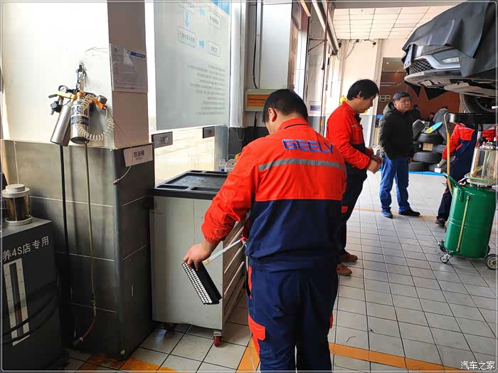 这个手册,每次保养时要必须带上。所以,一直来的每次保养我都会按保养手册要求去做。和以前一样,提前一天还是通过微信公众号上预约好保养时间,按照约定的时间直接开车到店。前台非常热情的接待了我,询问爱车有无异常情况发生,然后通过系统查看是第几次保养,记录后建议我这次应该做些什么项目,接着开好单子,告知我需要保养项目,让我确认无误后签字下单,之后将车开到工位上开始保养!整个过程下来大概在二个小时左右,因为上次保养时已更换过很多配件耗材,这次保养就是最常规的保养项目,更换机油和机滤,检查各零部件有无松动,损坏,灯光是否完好,轮胎情况等。然后将车辆洗干净后交付于我。接待小哥的微笑服务,师傅精湛技艺,复检师傅的认真,售后徐总的细节检查,享用免费可口中餐,热乎乎饮品等,让我切实感受到吉利倡导的“对客户关爱在细微处”的理念在4S店得到全面展示。又一次满意愉悦的体验,下次维修保养我还会选择回爱车娘家。