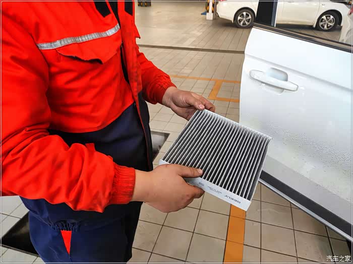 因为上次换过空气滤芯,这次保养师傅拆下用高压气枪吹掉灰尘后装上