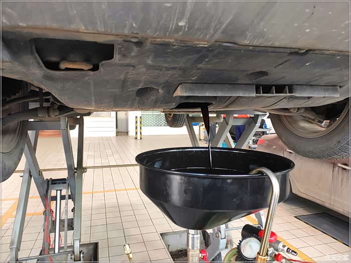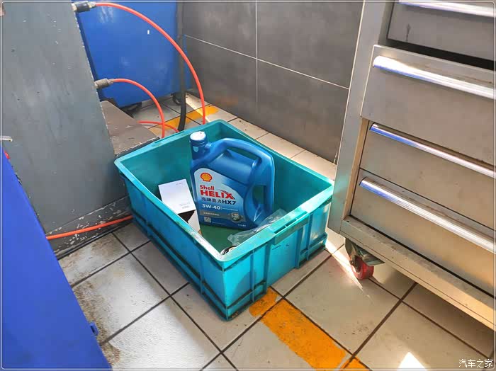 边上这辆车一保养完毕,驶开后,师傅立马对地面进行清理,赞