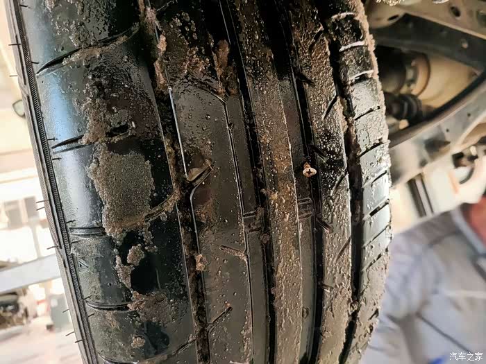 检查轮胎是发现了个钉子,无情!估计是没扎透。