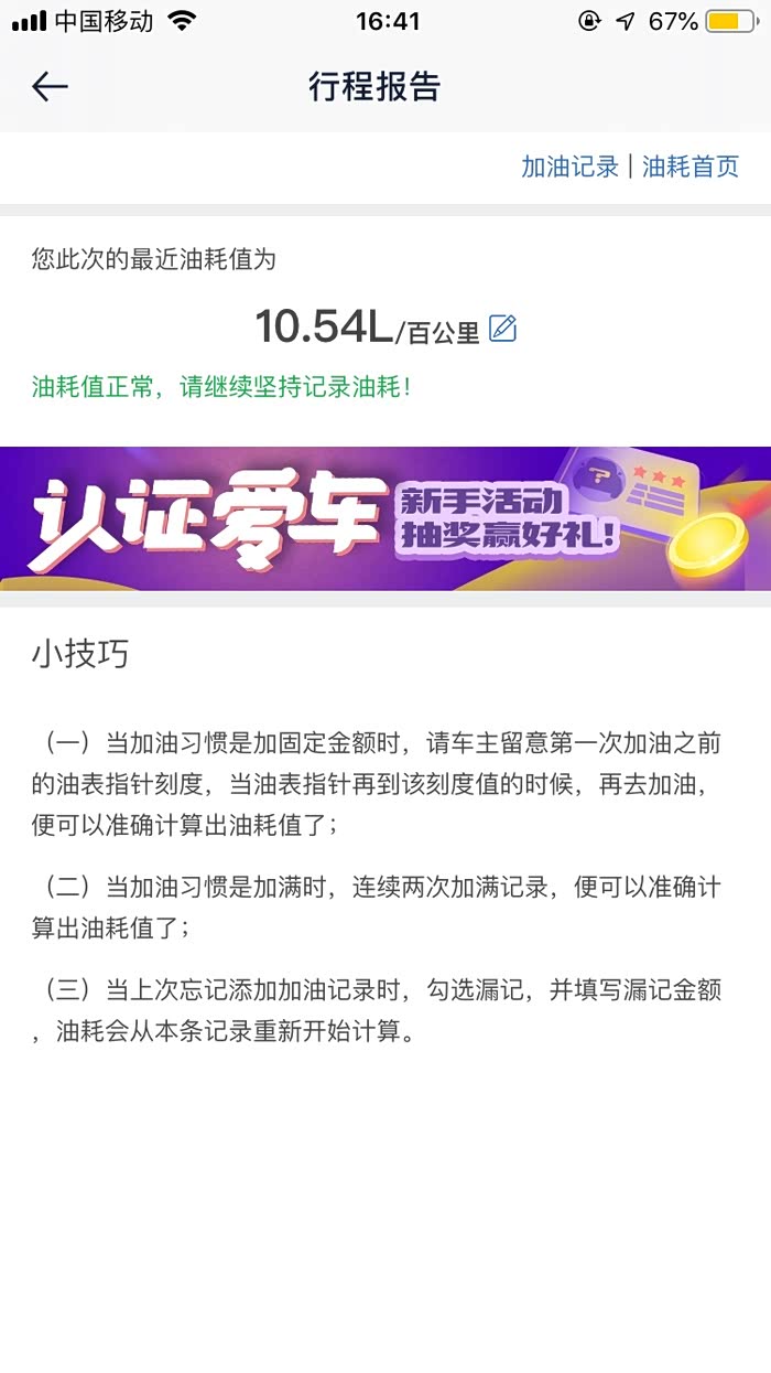 汽车之家油耗记录。每个月添加油耗还给万里通积分。