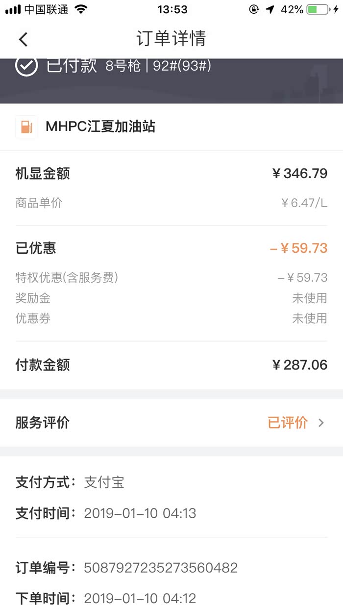 前一天加满油量,得益于之前注册过顺风车,但是却从未接过单,只是用来享受加油优惠
