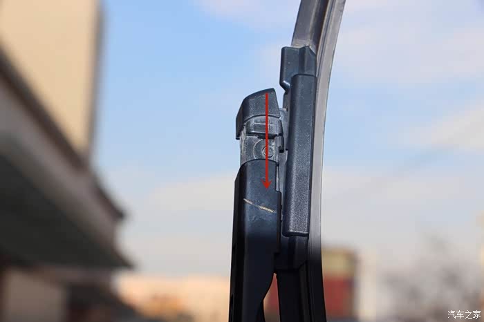 第五步把新购置的雨刷条按照可以卸下来的方式装回去就行,注意这里有滑道要顺着滑道往下推,刚刚卸的时候是往上推。