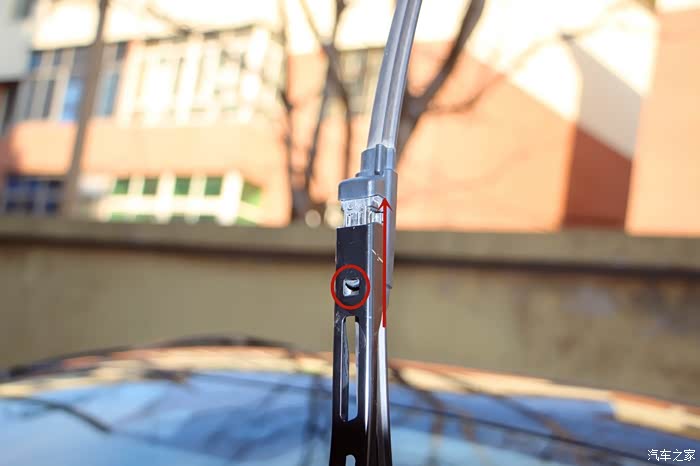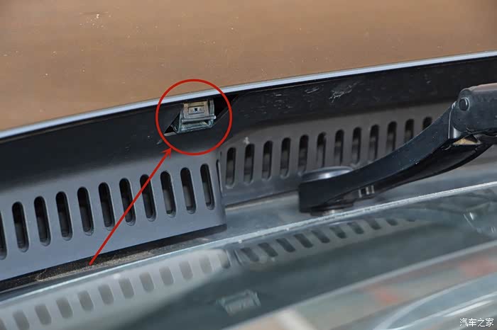 雨刷器附近是玻璃水喷水出,这个是可以调节高度的,可以上下推动,来调节喷水位置。