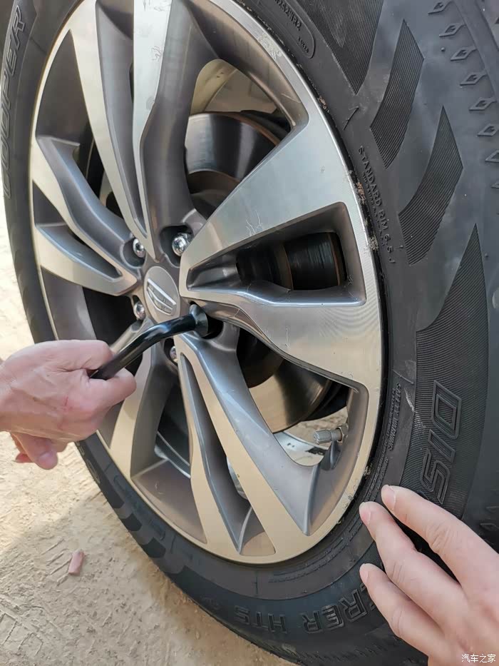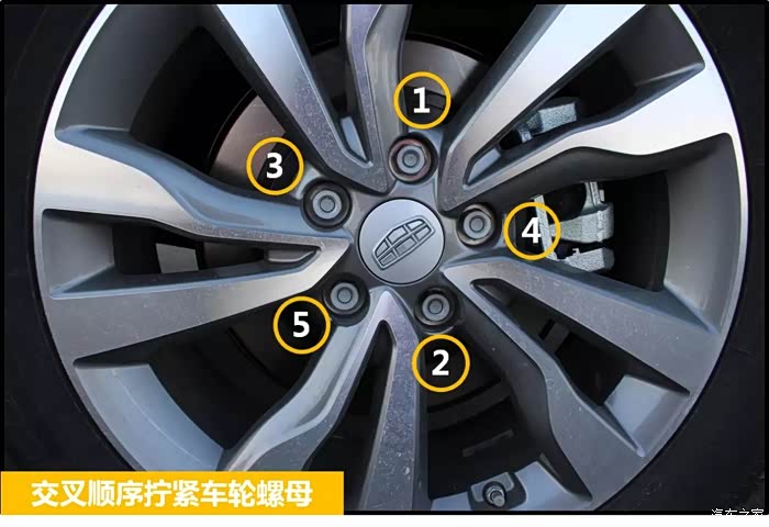一定要对角线拧哦,不然可能会拧的不紧,而且长时间高速行驶还可能产生松动,有很大的安全隐患
