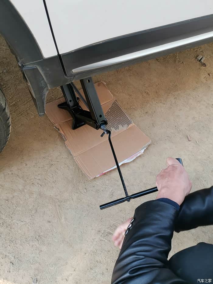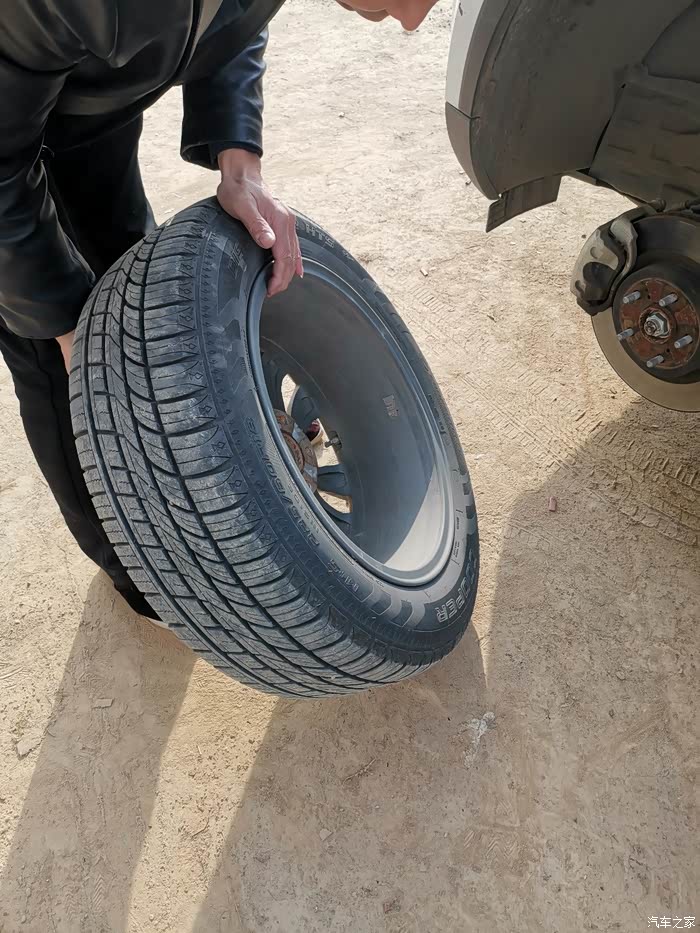 换上准备的检查好的新备胎,我这个是自己购买的全尺寸的胎,直接换上也可以长时间行使