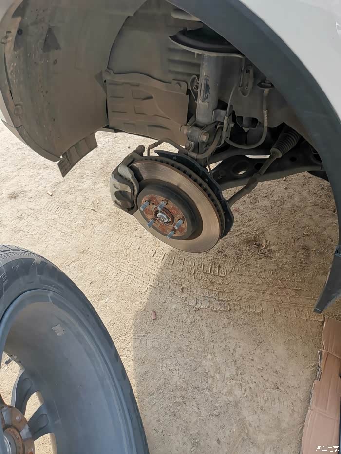 在轮胎卸下后这个刹车盘上面看看有无缠绕的杂物小石子颗粒可以顺便清理一下