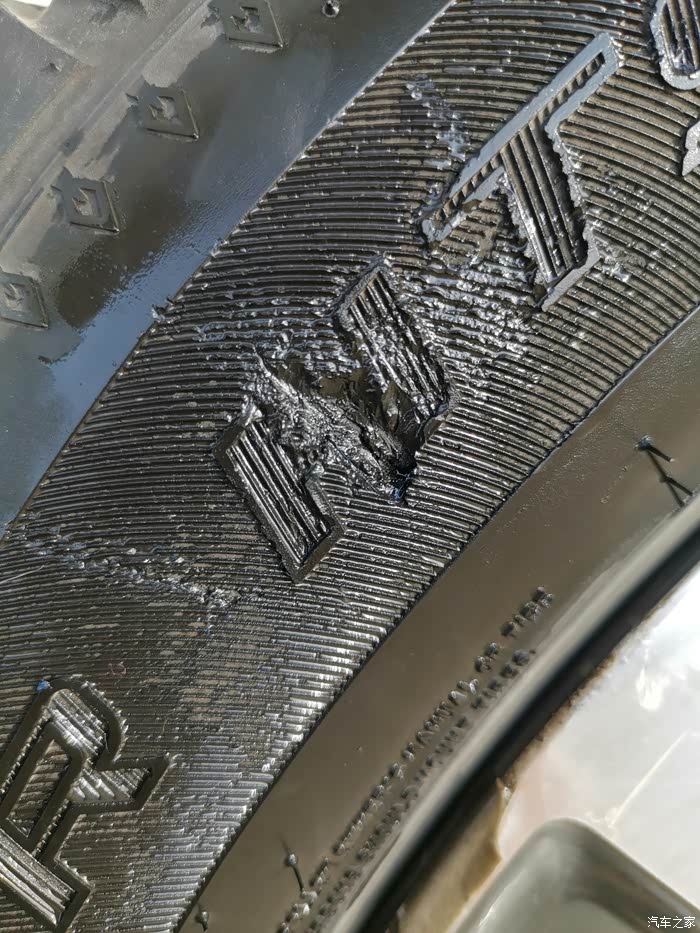 看看我这个胎被马路边上的石墩子给蹭的,那叫一个心疼啊!!!