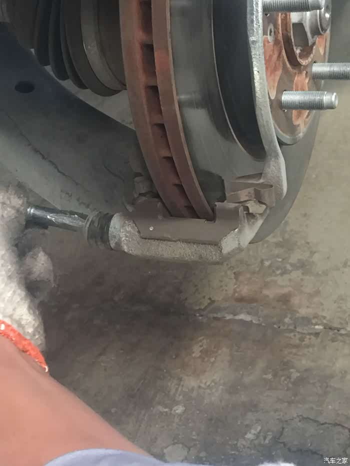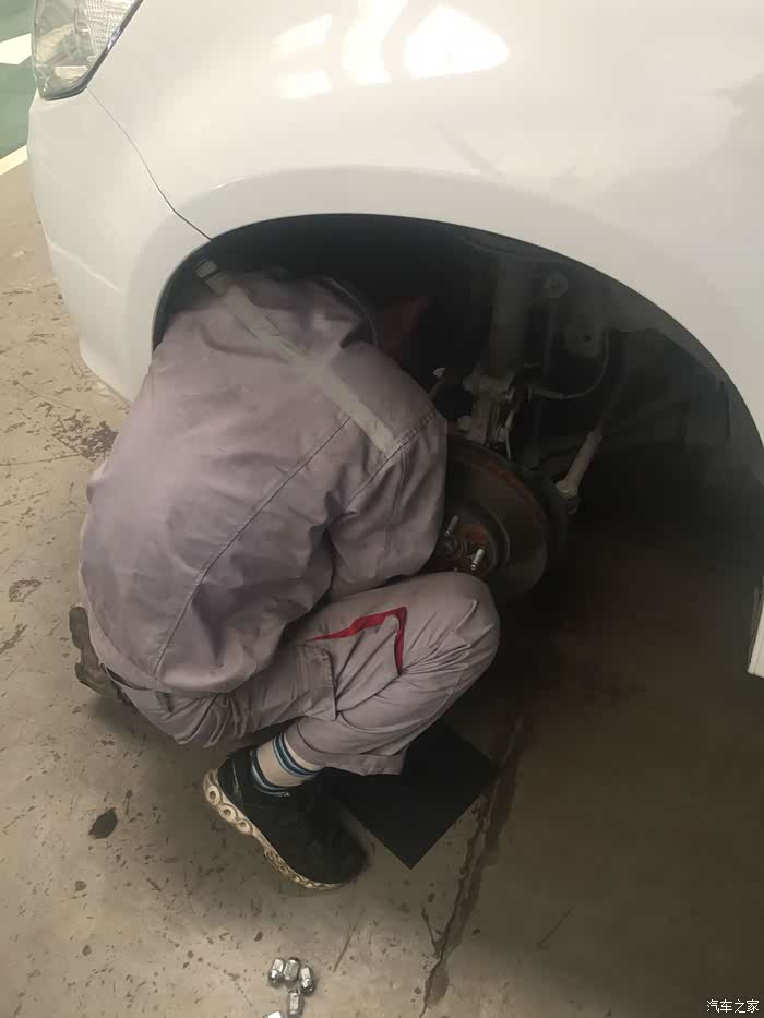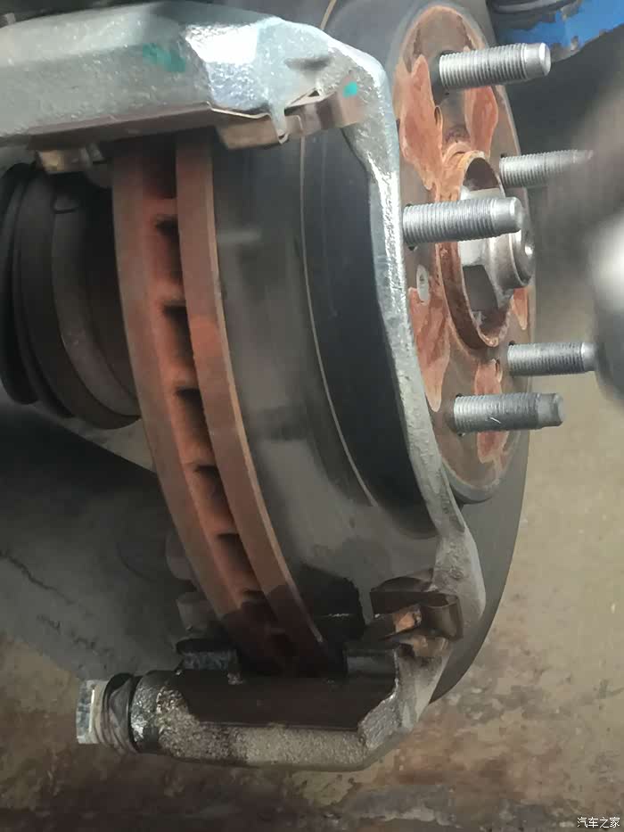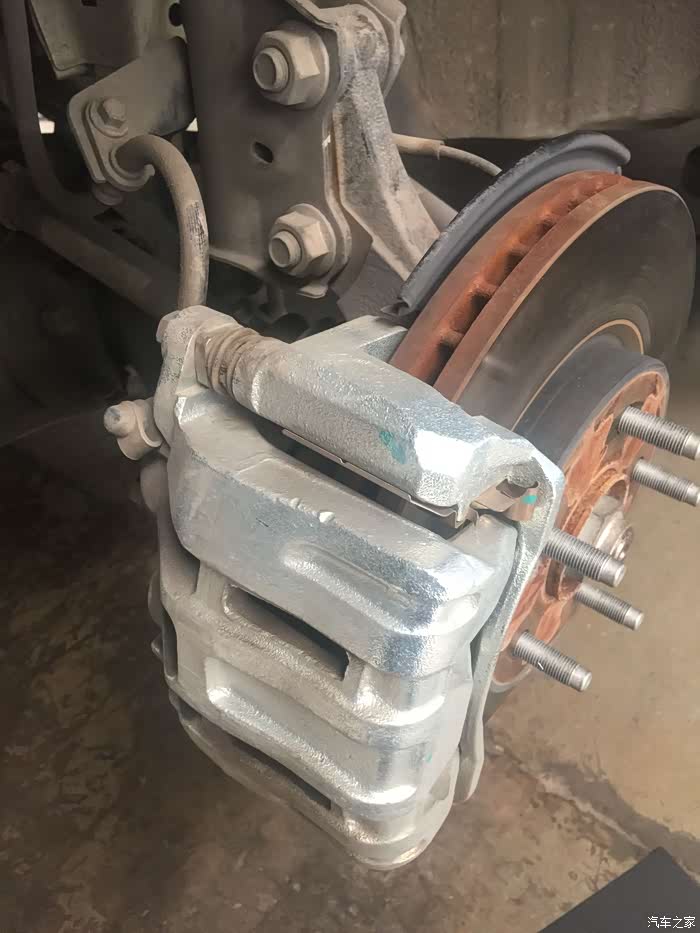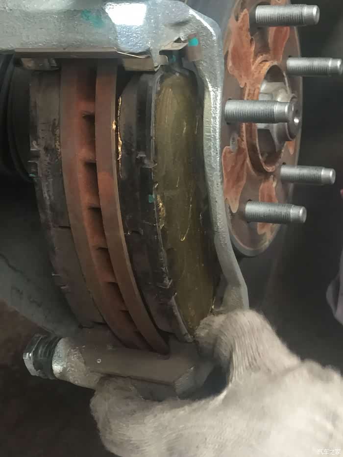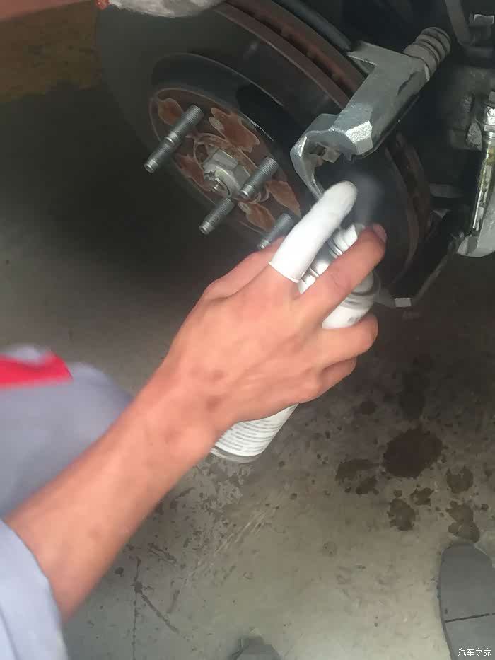 刹车的养护同样也不可忽视,一般需要在两万公里的时候需要保养一下,四万公里的时候依据刹车片的厚度进行更换。对于我们自己来说,检查刹车片是否需要更换的方法就是从刹车钳后端摸一下,感觉一下刹车片的厚度即可,如果已经比较薄了,最好更换,以免造成刹车失灵。还有一个办法就是感觉一下刹车灵敏度,如果刹车疲软的话,有可能是刹车片磨薄了。我的车现在24400多公里了,是需要拆卸下来检查一下的时候了,顺便对刹车钳部分进行简单的养护作业,提高一下制动效率。经过维修师傅的拆卸检查,我的刹车还是比较好的,各部分磨损都不很严重,属于正常磨损范围内,这一下我就放心多了。