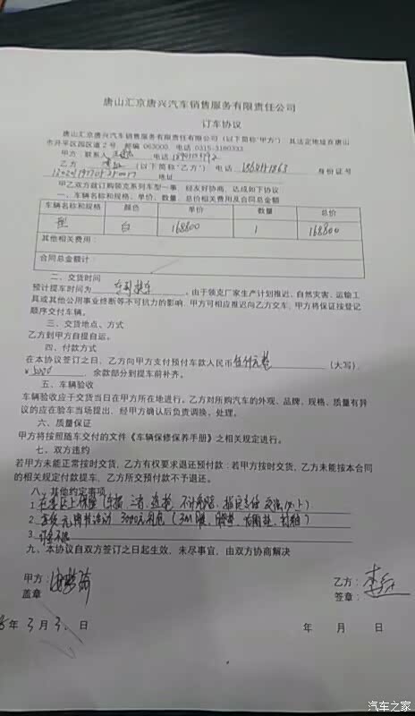 字有点难看,各位老铁别笑话我啊,当初为了快点提车定的型,回家了怎么想也不对劲果断换了型P,事实证明这一万元真没白花。型P的性价比才是最高的~