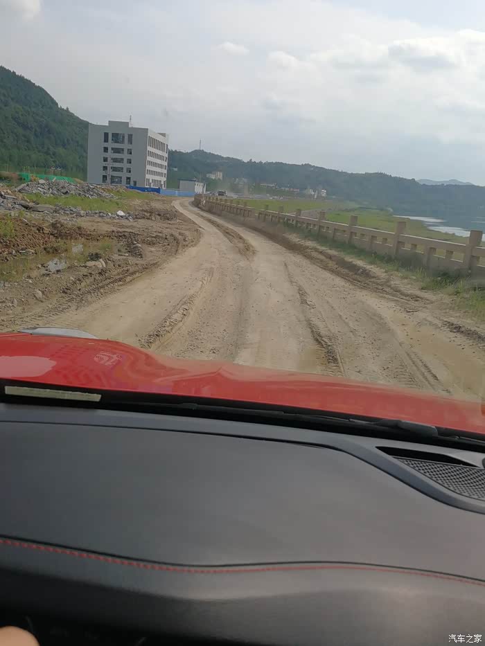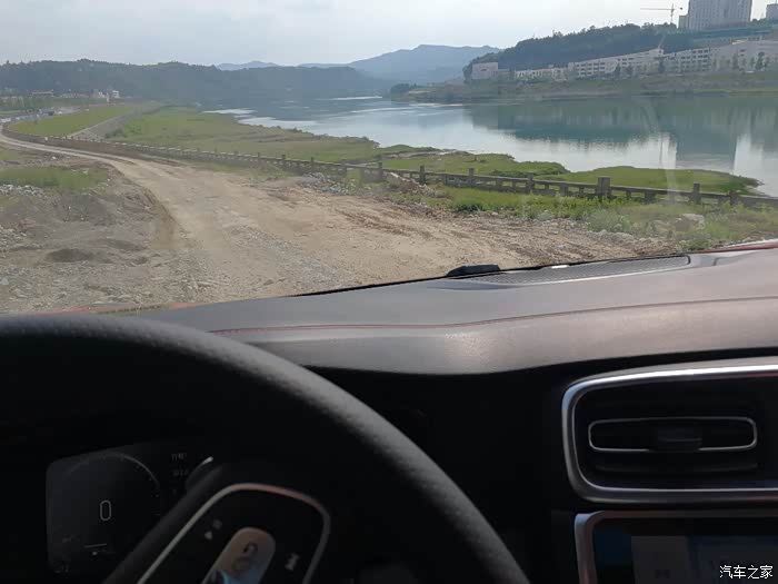 现在进入正题,在这一次从苍溪到阆中的行程中,我看到一个河滩很美,于是就有了驾驶领克去看看的想法(因为是四驱我的胆子也大了些),和老婆一商量就决定下道去看看,说不定能拍到很多美图!要去到河滩要先经过一段工地大车撵出来的车辙路,很深很深,深到可以让领克挂了一下底盘,在期间就发生了车轮悬空,这时由于我挂的是越野模式,车轮很快制动,动力被分配到其他有敷着力的轮胎上,这一点和在场地试驾里的交叉轴感受一致,但是在越野时我发现它的偏公路的轮胎胎压很高,车子振动很大,悬架感觉很硬(典型的公路胎,而且我也知道它的胎壁很薄)由于工地路段有很多工程建渣和钢筋,出于保护轮胎的考虑我最终放弃了下到河滩上。