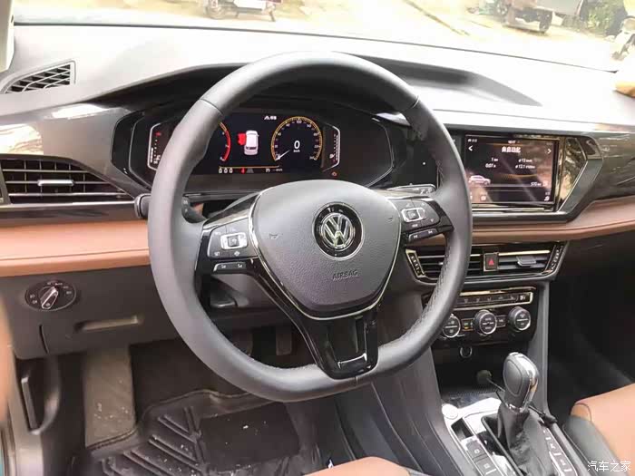 中控台设计的很好看,也有大众的家族感但是不浓,看着也很上档次,而且皮质颜色的搭配也很个性。