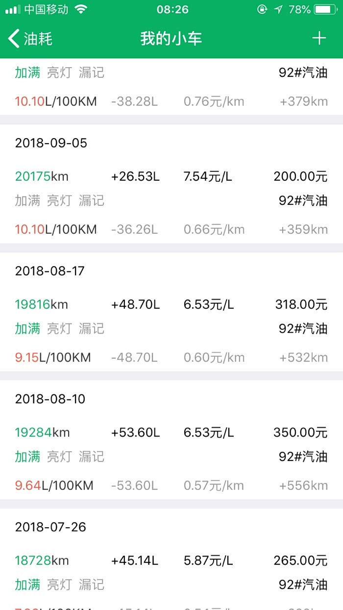 9月10月份加油记录。