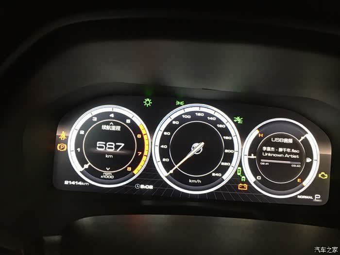 加满油表显显示可以续航587公里,这个续航可以随着你跑的路况随时加减。
