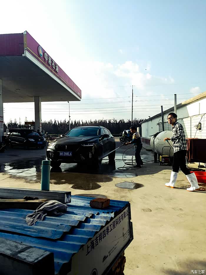 早上的天气不错,坐进WEY,去加满油,洗白白。