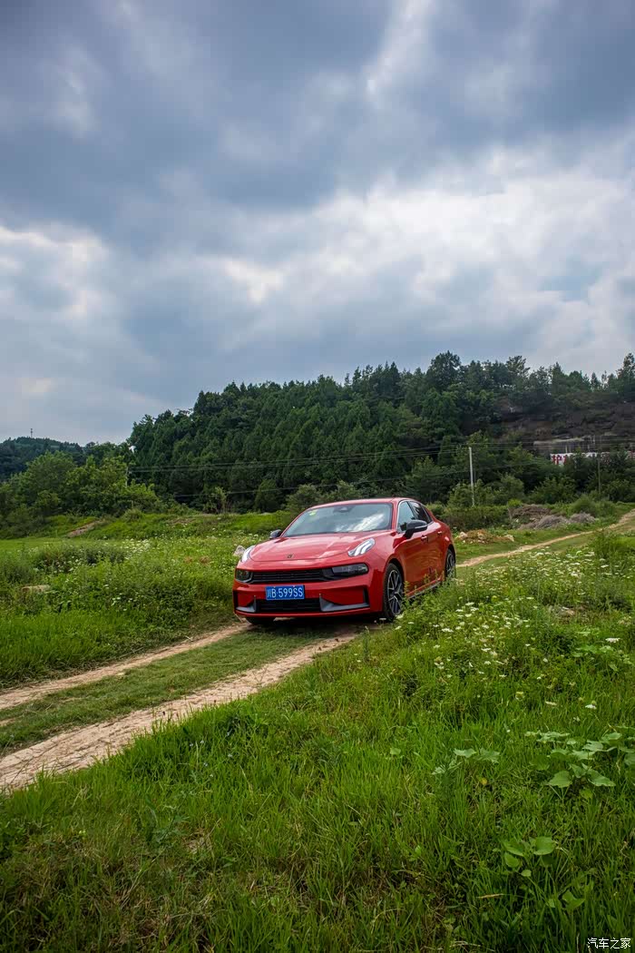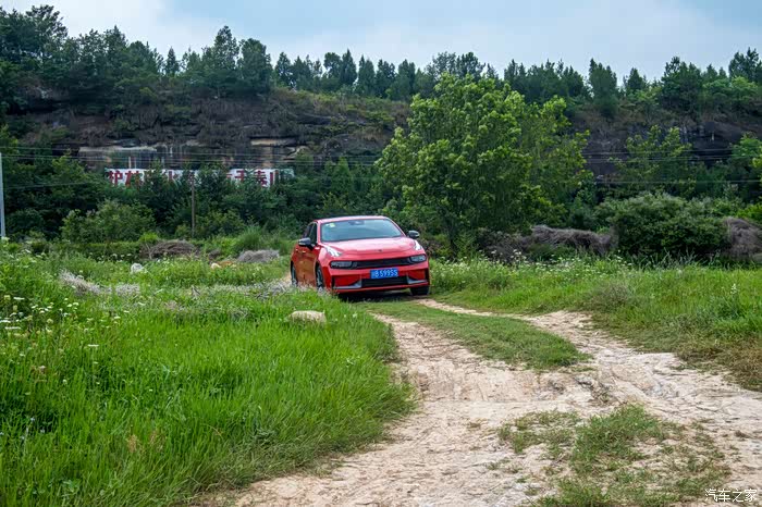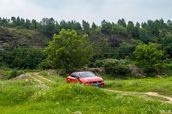 草坪中间有一条被车撵出的路,但是不平坦,对于领克03来说还是离地间隙太低了,所以走了很没多远,就不得不停下来。