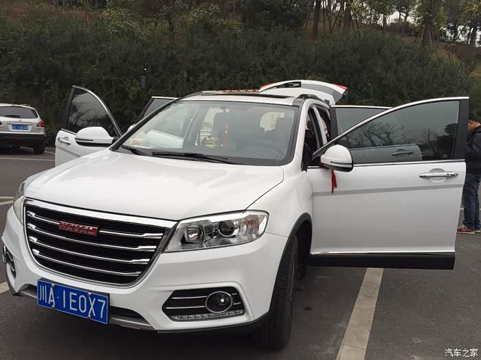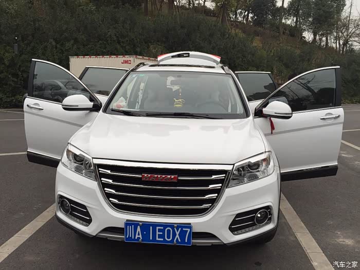 额~~~找哈弗官论扣扣群找了两个月。放弃了。(有知道的大屌们请带个路,谢谢)其实我买车之前根本就没有把哈弗品牌放在考虑范围之内,也没有把白色放在我的考虑范围之内,可能这就是命吧。当时中了吉利的毒,一门心思的想买吉利,奈何它**(国骂)产能跟不上。拍个订单等半年,呵呵了。我是在大年25提的车,而且异地购车,各种眼泪鼻涕我也不说了。反正最后是赶在放假前开车我的66回老家了。心情还是美滋滋的。开回我们村,大家都觉得挺洋气的。优点咱就不说了。就说我不懂的吧,大哥们,你们在跑高速的时候会不会遇到有时候在驾驶的过程中,有时候想加速,油门都给的很重了,但一点加速的感觉都没有,必须要抬起油门再给油才行。然后就是自动巡航,用过5,6次,有一次自动巡航中突然转速从两千多飙到三千多,发动机轰轰的,这可是在高速上啊,吓尿了。还有就是动力,有一次翻垭口,一个上坡泥巴路路面打滑,我怎么也上不去,后面的长安之星都能过去。被嘲讽动力简直弱爆了。这使我有点担心怎么带我去318吖。还有一个就是油耗,因为我都是跑高速比例多,所以基本跑高速都是8个油左右,但到了城市道路,就会慢慢涨到12个多。不知道正不正常。(均是我一个人,车内无其他人的情况下)好了,我该上图了。拍照的时间不多,抽空拍了一组,一直没提交上来。打算这星期首保了再交,算了,等不及了。有违规的地方请斑竹明示!再次谢过。