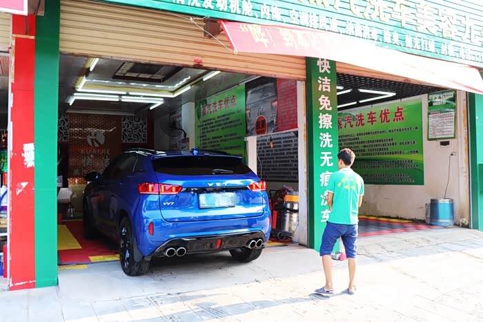 店里员工帮我开进洗车棚