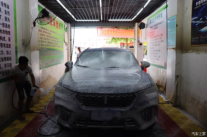 由于是第一次来洗车,这里的老板还亲自过来一步一步讲解,喷洒分解液是为了快速分解掉车漆身上的泥沙,让它顺着水流下来