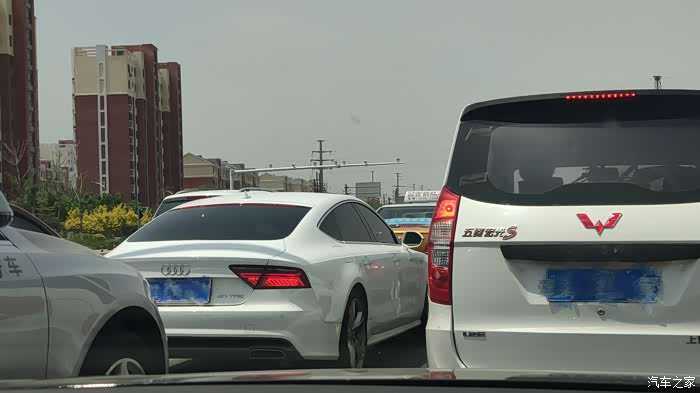 偶遇前方两台大佬级神车大名鼎鼎的五菱宏光——S~!还有我的梦想神车——A7~!