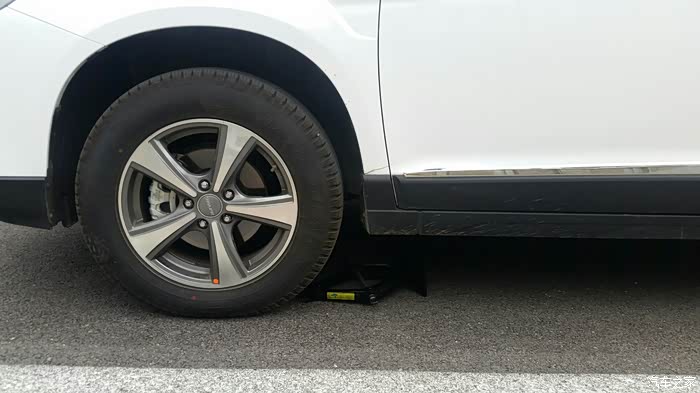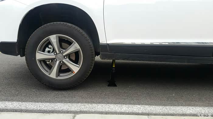 没有专业的四驱测试工具,就拿千斤顶把昨左前轮顶起来