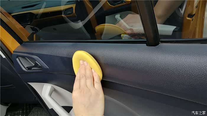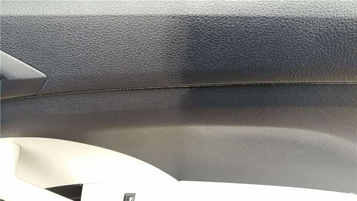车门饰板做了个打蜡前后的对比,打过蜡的部分明显很有光泽。