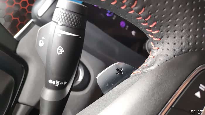 方向盘带有换挡拔片。