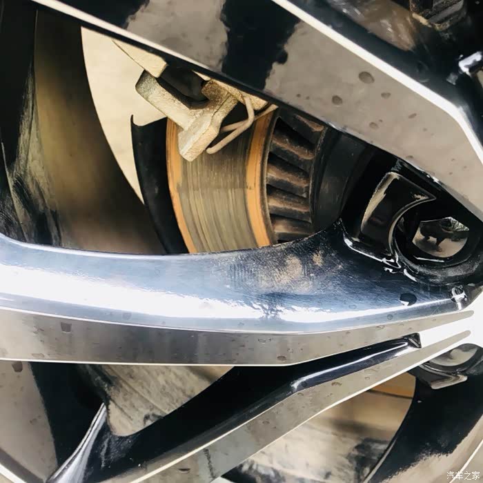 右后轮。从图片上看每个轮子有锈迹,后轮较为明显。可这些都没什么大问题。新车车友们就放心,不会存在任何问题的,待会就出去跑一跑看看有没有变化,中午出去溜了一圈回来再看看。