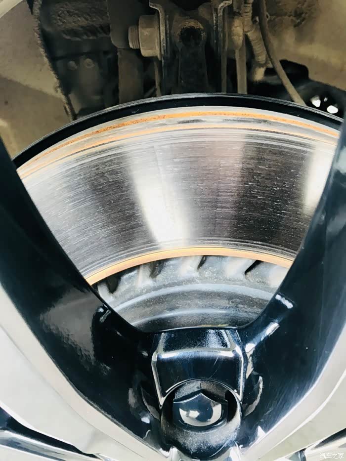 左前轮从图片上中间一大块都被刹车给磨没了,两边还有一点。