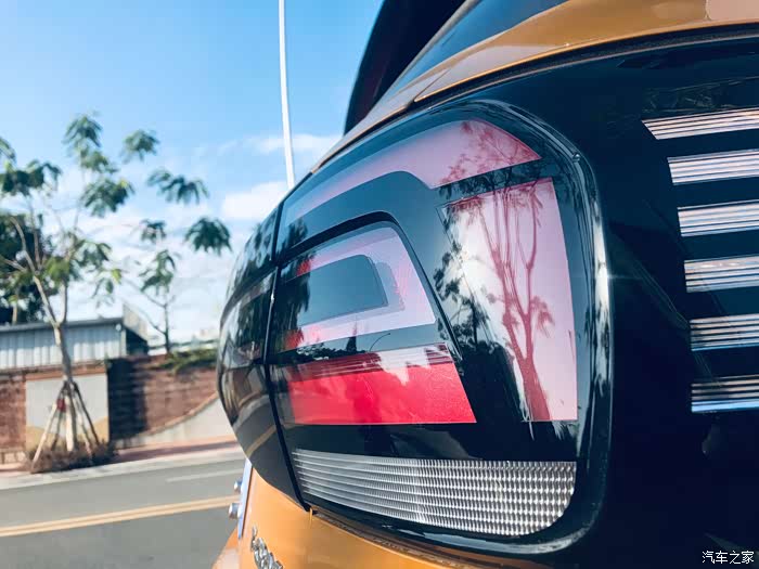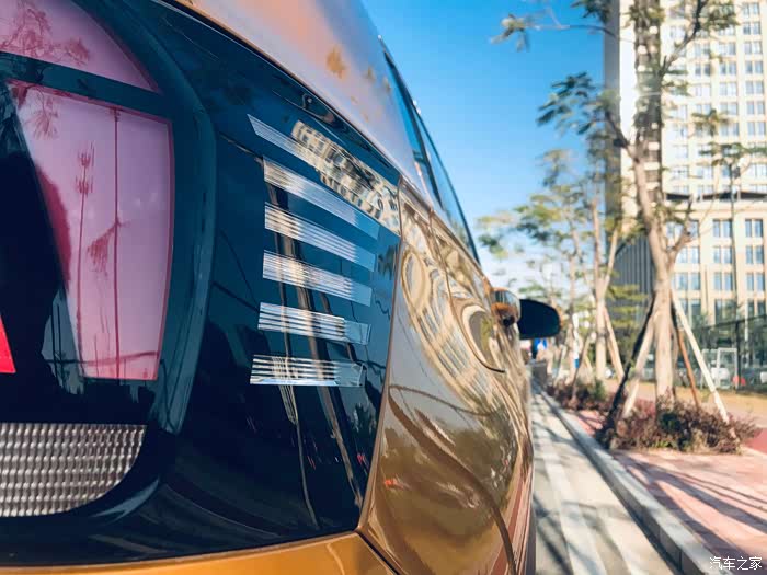 贯穿式的尾灯很漂亮,黑色的设计显得车尾很漂亮而且实车的质感是很强的。