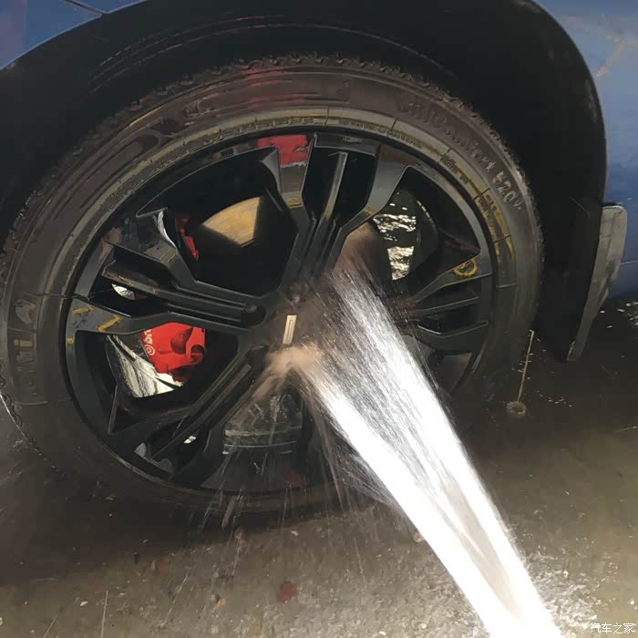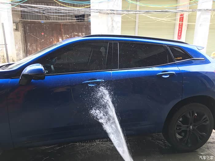 先冲湿车身,让流水带走一部分车身上的泥沙