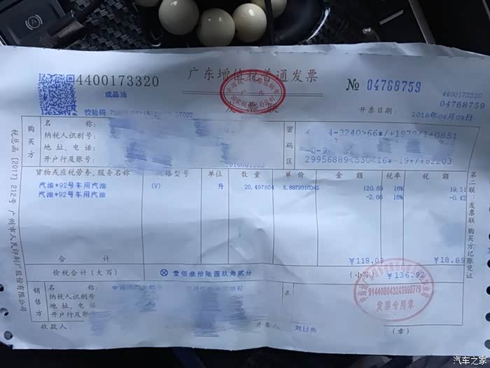 6月9号,开了7天195公里后,加满跳枪。一共加了20.5L