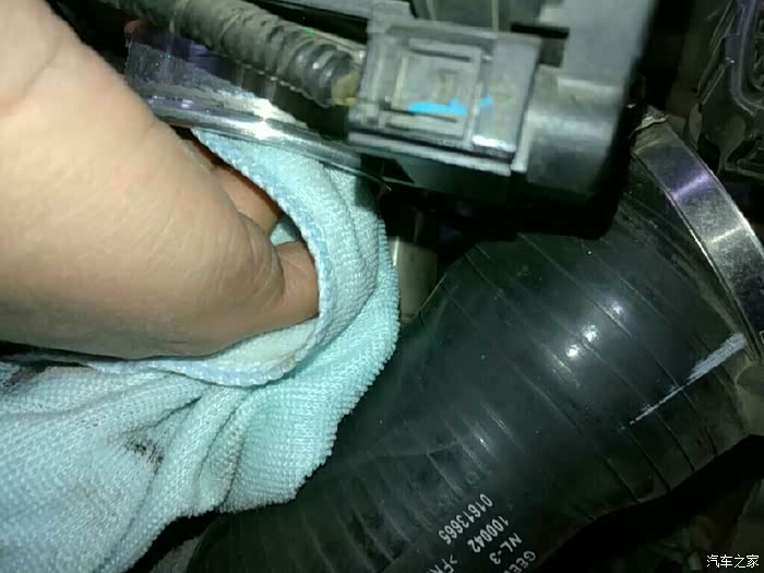看看多黑,可重复擦拭直到干净,博越节气门位置靠下第一是不好拆,第二拆后如果线束插不好有松动的话就会出现异常那就得不偿失了