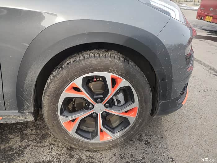 18寸橙色大轮毂动力杠杠的.配合着机甲轮眉。