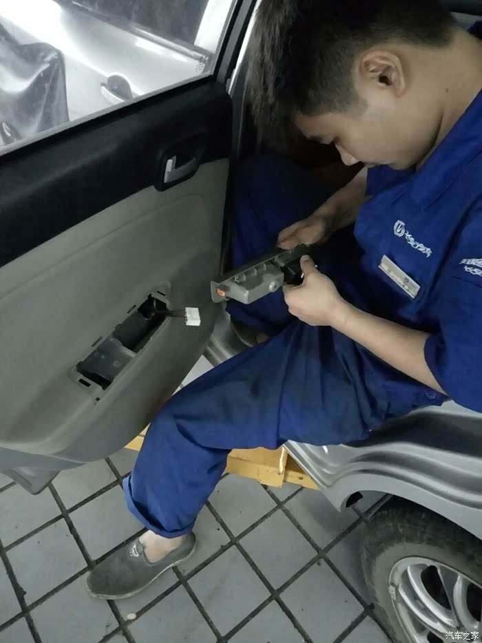 小三跟我快六年了,动力足,油耗低,轻便灵活,大毛病几乎没有,而六年的车有些小毛病也属正常,就如同人老了,健康状况也不如年轻人了。前几天发现左后窗升降失灵,估摸着升窗器开关坏了。因为长安原厂升窗器总承损坏的机率很低,升窗器开关就与日帝家庭照明开关差不多,属于易耗部件,有使用寿命的,如果自己会动手,早就买来配件,干净利落的换掉,现在只能求助于4s店师傅了。经检查,我的判断并没错。师傅轻车熟路,几分钟搞定。