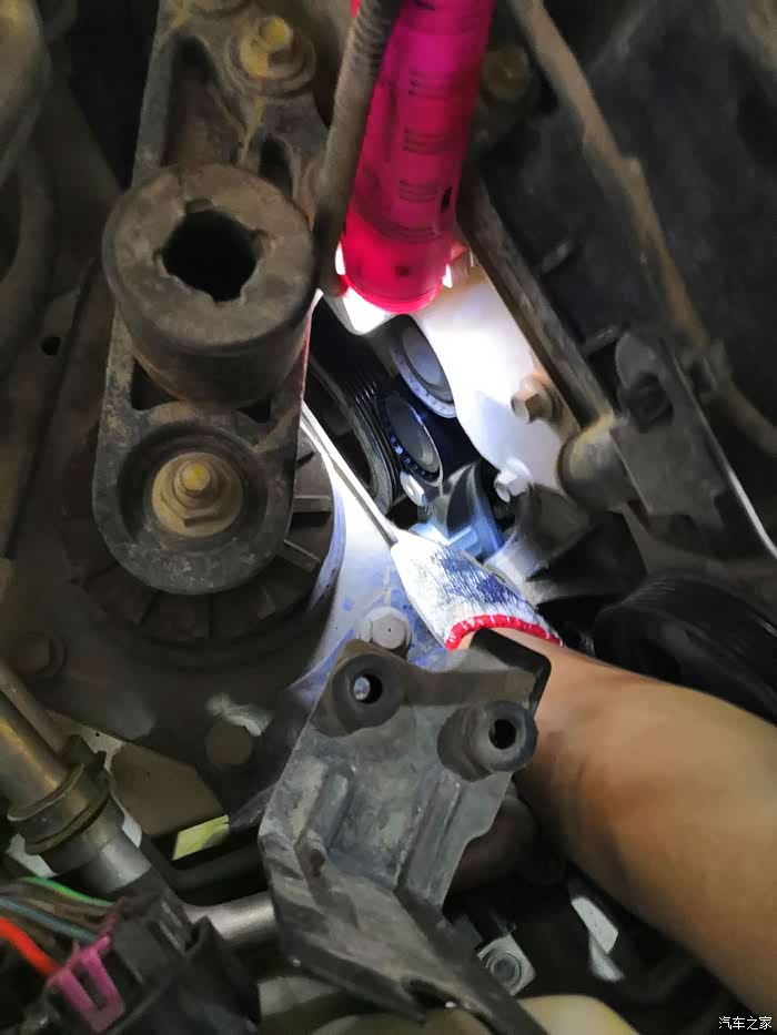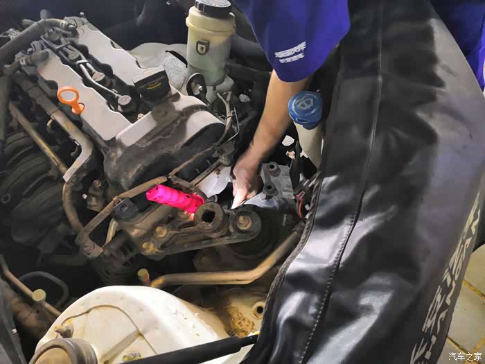 因为异响检查了皮带,没有发现皮带异常,反而是皮带的转轮异响。经检查后是张紧轮出现异常需要更换。