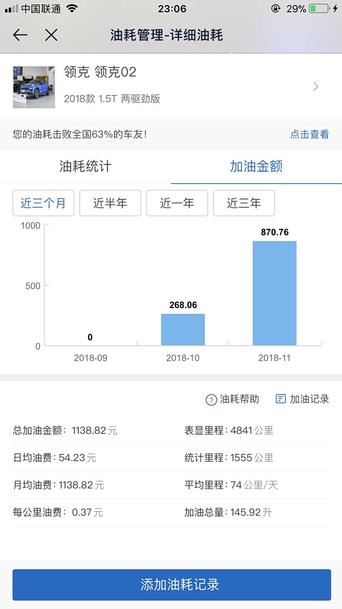 通过这几次的记录,领克02的油耗还是很让人满意的,不知道大家的油耗都是多少。