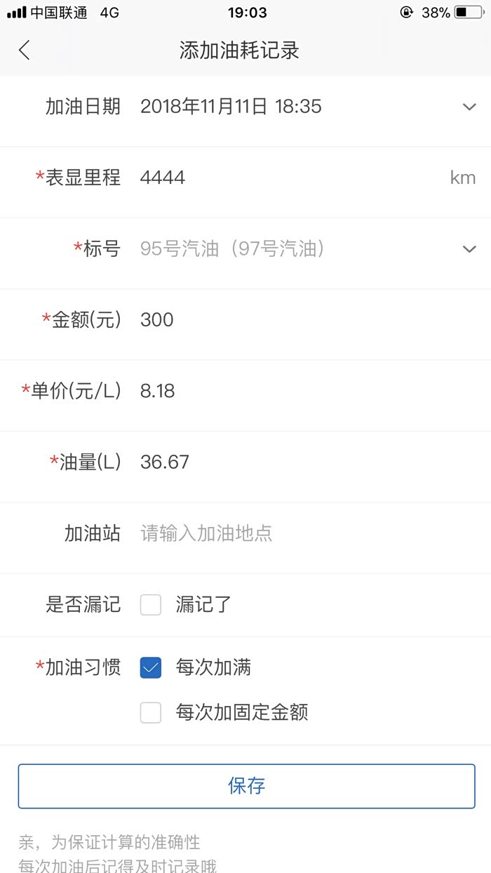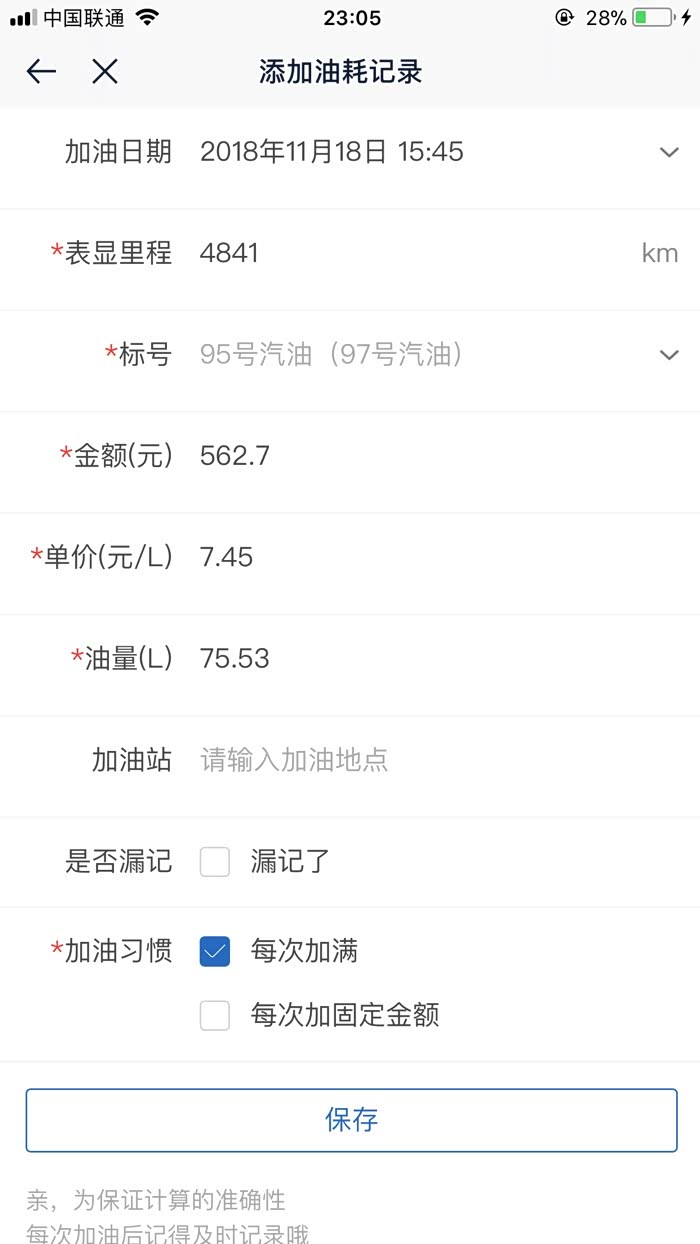 解释下75.53升,并不是我的油箱大,哈哈哈。因为上次只加了300,没加满,当时油价8.18,也就是加了36.67升。加上这次的38.86升,一共是75.53升。