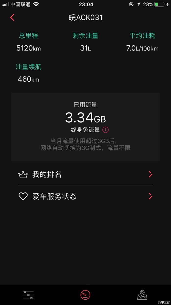 按照这个数字计算,油耗是6.8L/100KM,当然这个并不准确,因为剩余油量不显示小数位。
