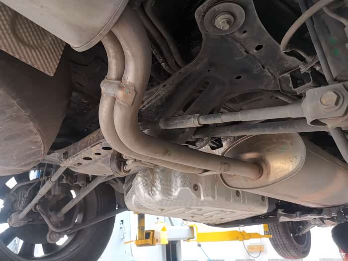 来到车底盘,看一下车辆的后悬架,用料很扎实啊