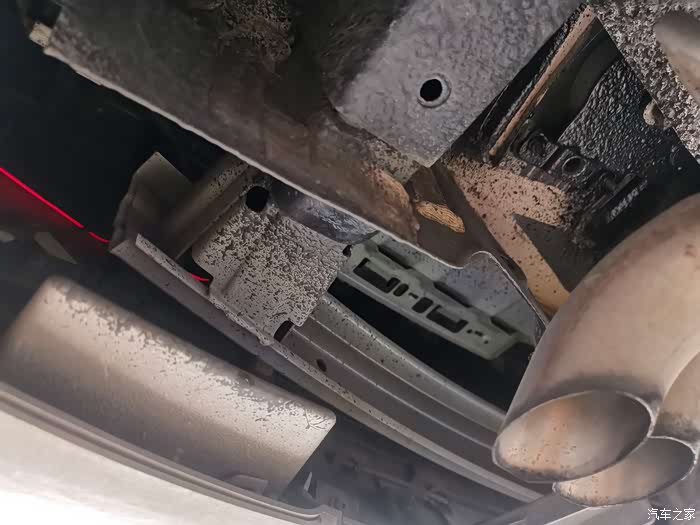 从这个缝隙里可以看见车辆的后防撞梁,还是很粗状的