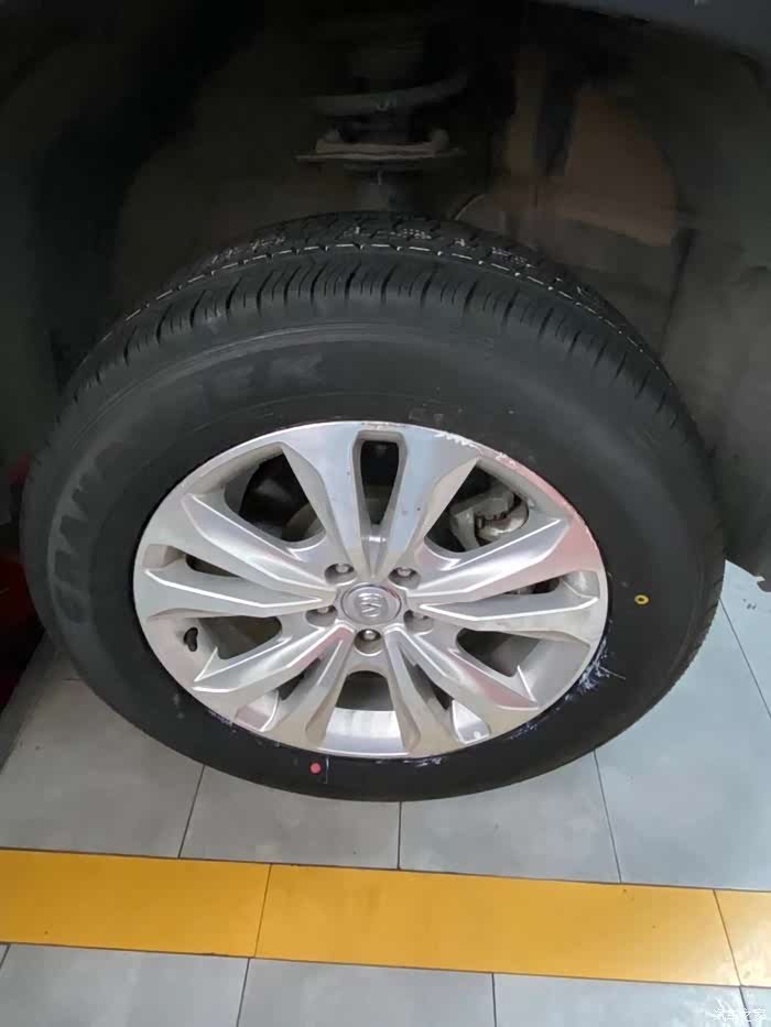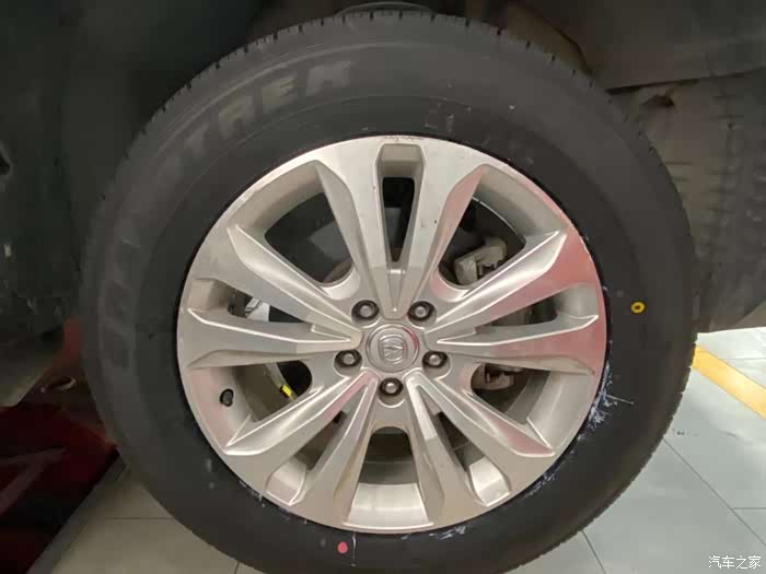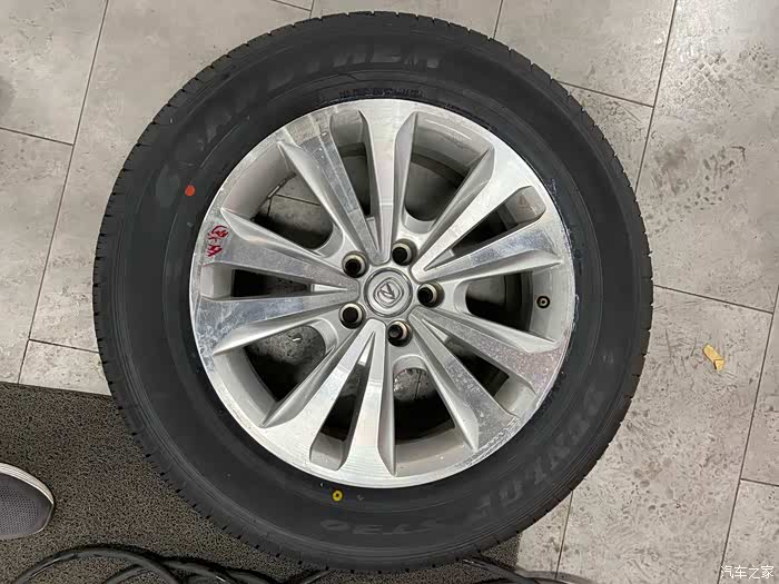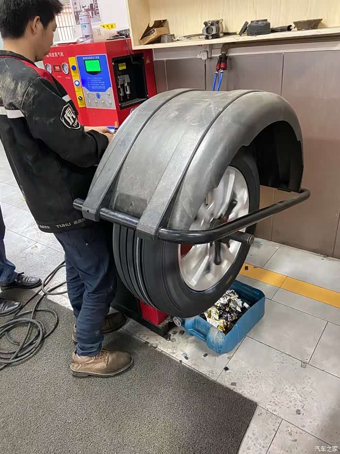 新装上去的小脚,作为前轮用。CS95好像是有胎压传感器的,一定要标记好方向,别搞混了,显示就不正确了。