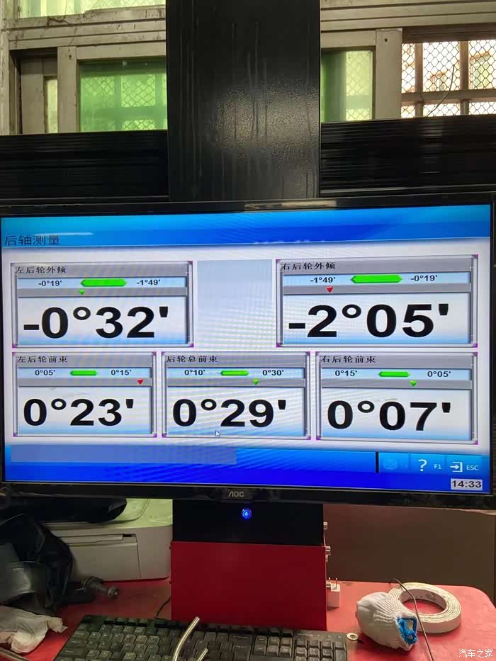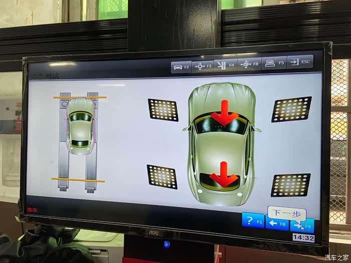 准备完毕,要两个人把车子往后拉,电脑就能读取出数据偏差