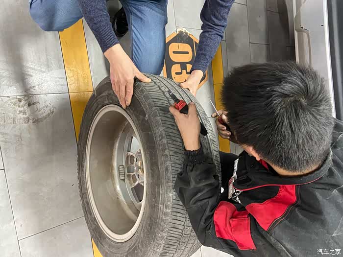 下午终于轮到我了,师傅很好,把另外两条胎也卸下来看看有没有钉子,帮忙挑出来看看有没有漏气,还有都是一些小钉子,钉不进去的。
