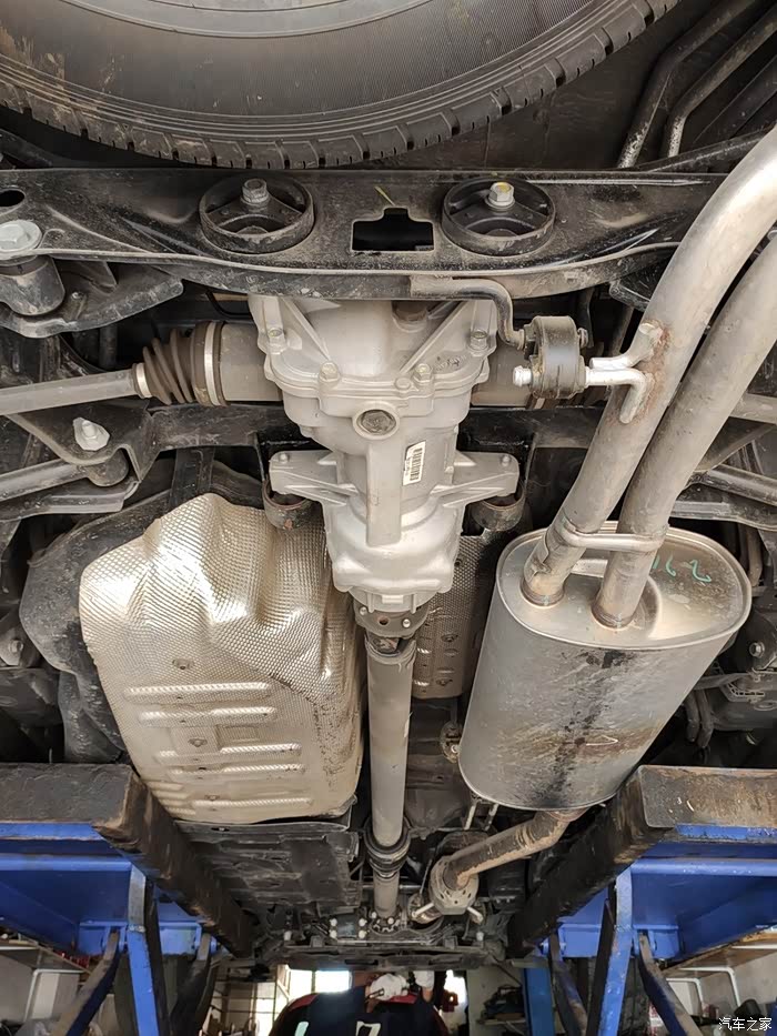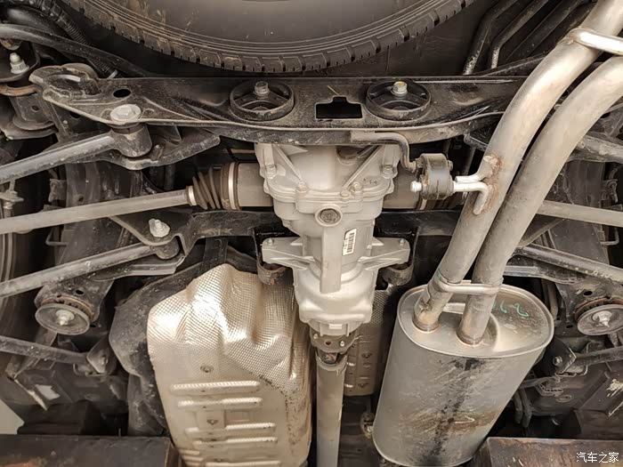 传动轴从中央通过,排气和油箱各占一边,这也是为啥车内没有鼓包但油箱不大的原因。