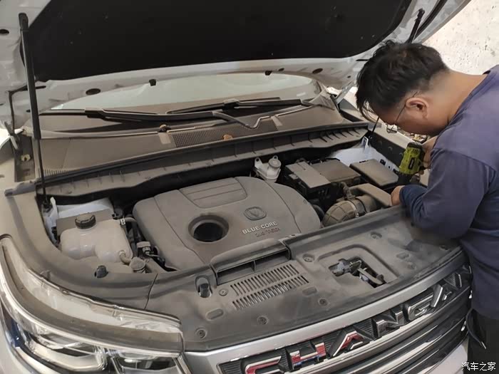 之前也交代过,4s首保经历不是很满意,从二保开始自己找信得过的地方保养了,自己用细粮伺候大白CS95此时明翰正在拆空滤中。