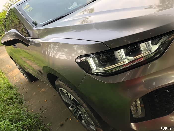 对于VV5来说最满意的肯定是外观颜值了,基本上大多数人都是第一眼被VV5帅气的外观所吸引的吧,20万以内的VV5是最帅的了,没有之一,家族式的豹式前脸,宝马的设计师倾力设计打造的外形,车标设计的也是很高端大气,看起来很高级,一点都不俗气,豹式的前脸很有特点,让人一眼过后就不能忘记,竖形的车标立在中间就像豹子的鼻子一样,整个车型用的子做前脸,俯份中式的车身,感觉张力实足,就像豹子即将启动捕捉猎物一样,给人的运动感也特别强,配上豹式前脸上竖形的日间行车灯,雾灯,led远近一体的大灯,流水式的转向灯,全部都是led的材质,也全部都是竖形的灯光元素,和车标也对应,前脸的设计上肯定花费了不少心思,所以才有这么帅气的颜值吧。
