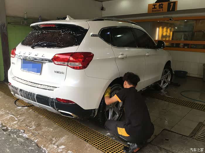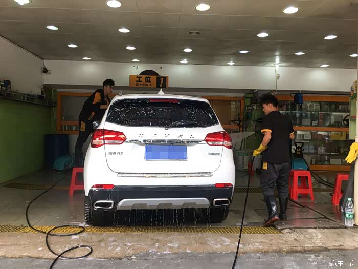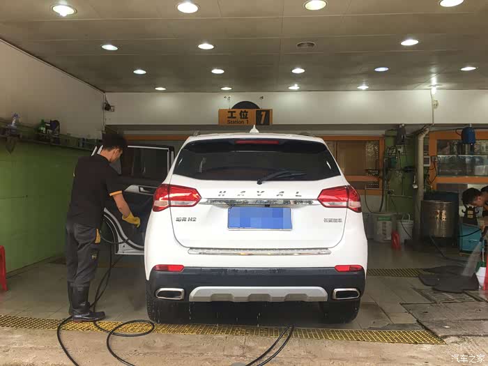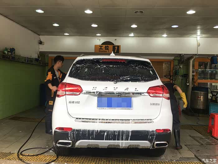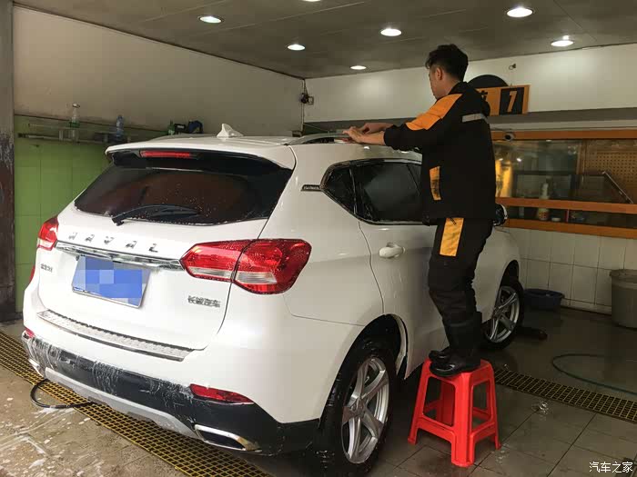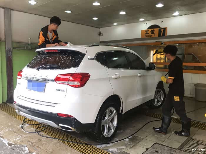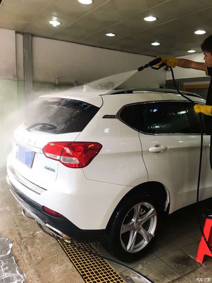 一个月没洗车了,开到路边一个小店洗刷刷,顺便想提个建议,买车买白色更耐脏和更亮眼,白色配上哈二这美观的设计,颜值不输十几万的合资车,其实这样柔和风格的外观线条更体面和大气,如果设计得很多锋利的形状的话,估计今年到目前,哈弗的销量也不会有95万那么多了。