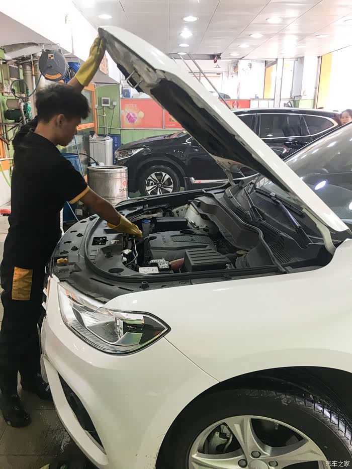 小哥给我加满玻璃水,如果开车经常用玻璃水的话一定要保持足够的量。