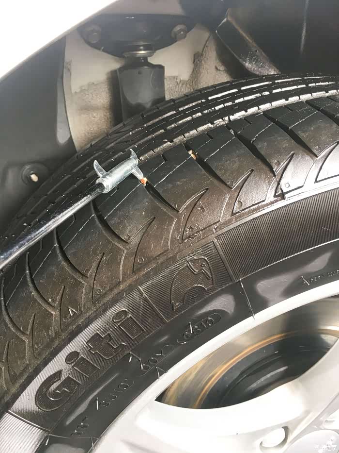 清理轮胎上的小石子,别小看这些小隐患,会降低轮胎使用寿命的。